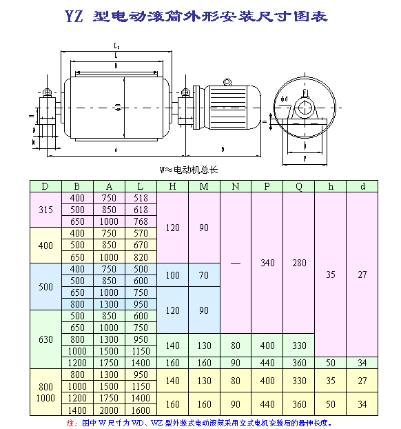 YZ 型擺線針輪油冷式電動(dòng)滾筒系列參數(shù)表: